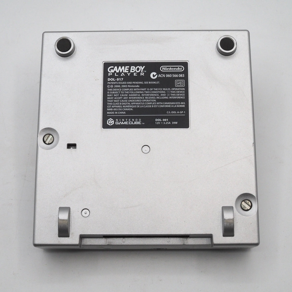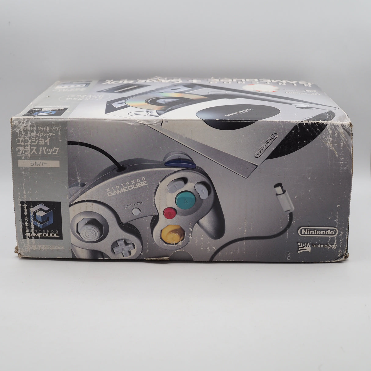 This item rank: B (Tested working. Console, Game Boy Player, and controller show scuffs and scratches. Controller has partial paint wear. Box shows age-related wear.)