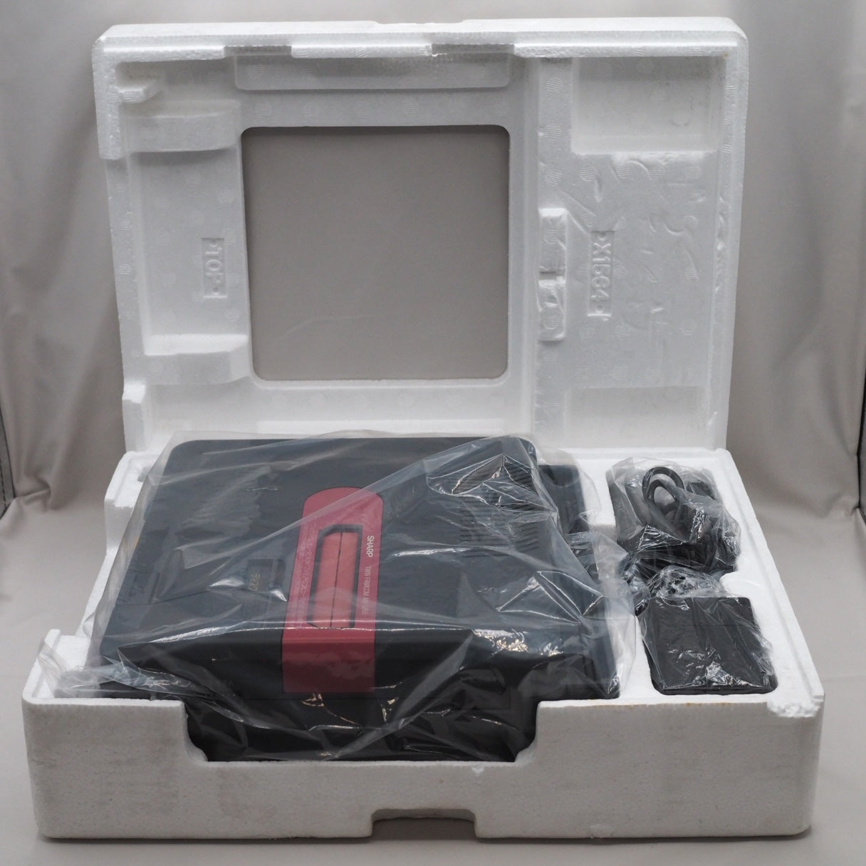 Sharp Twin Famicom console (AN-500B) with 2 controllers + magnetic protective sheet (Disk System) + official power adapter + official cables + retail box + styrofoam insert