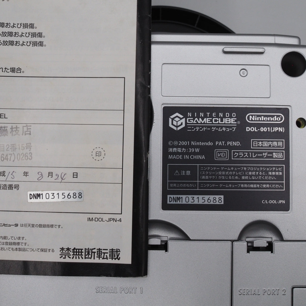 Used. Tested and working. Reads NTSC-J (Japan) and NTSC-U/C (North America) game discs. Not compatible with PAL-region games. The serial number on the console matches the number printed in the instruction manual.