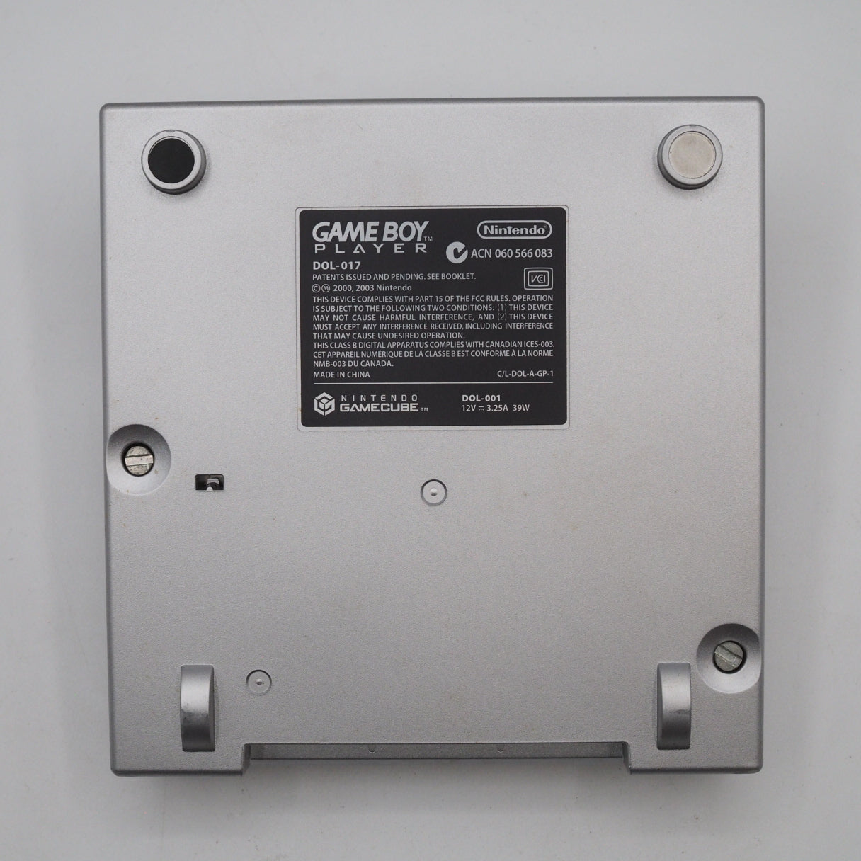Included items: • Game Boy Player Start-Up Disc (with special case and instruction manual) • Console instruction manual (shows creasing/wear) • Official Nintendo AC adapter • Official Nintendo AV cable