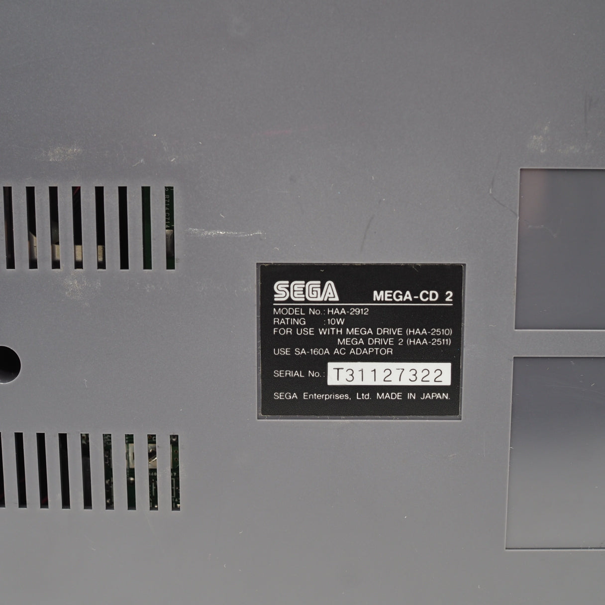 The Mega Drive 2 console, Mega CD 2 console, and controller all have some scuffs and scratches in places from normal use. Includes one genuine Sega AC adapter, one non-original AC adapter, and a connection cable. The metal mounting plate and screws used to secure the Mega Drive 2 and Mega CD 2 are already attached to the Mega Drive console. The spacer for the Mega CD 2 is not included.