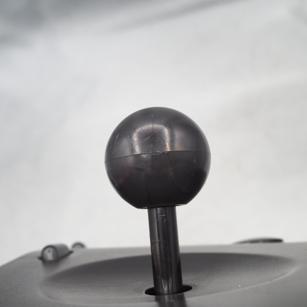 The console and both controllers show scuffs and scratches from normal use. Both controller joystick balls have cracks.