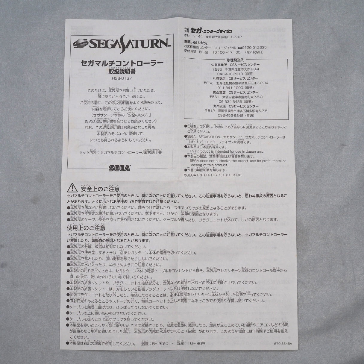 Used SEGA SATURN 3D Multi Controller HSS-0137 Boxed + Nights SET - Tested & Working