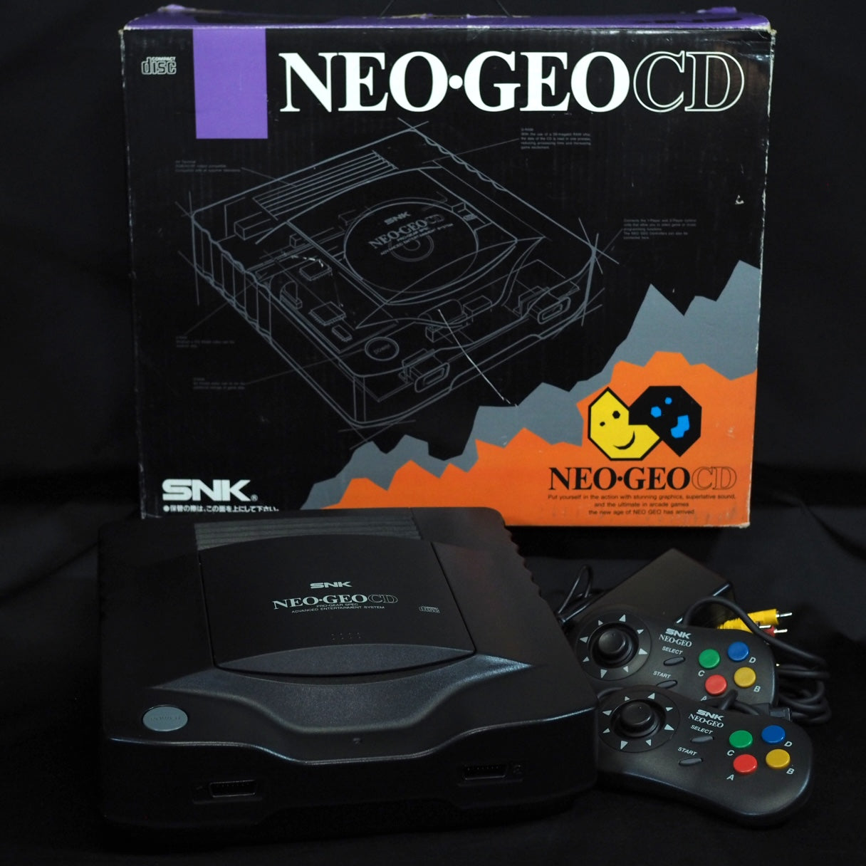 SNK Neo Geo CD console (CD-T01) + 2 controllers + official AC power adapter + cable + retail box