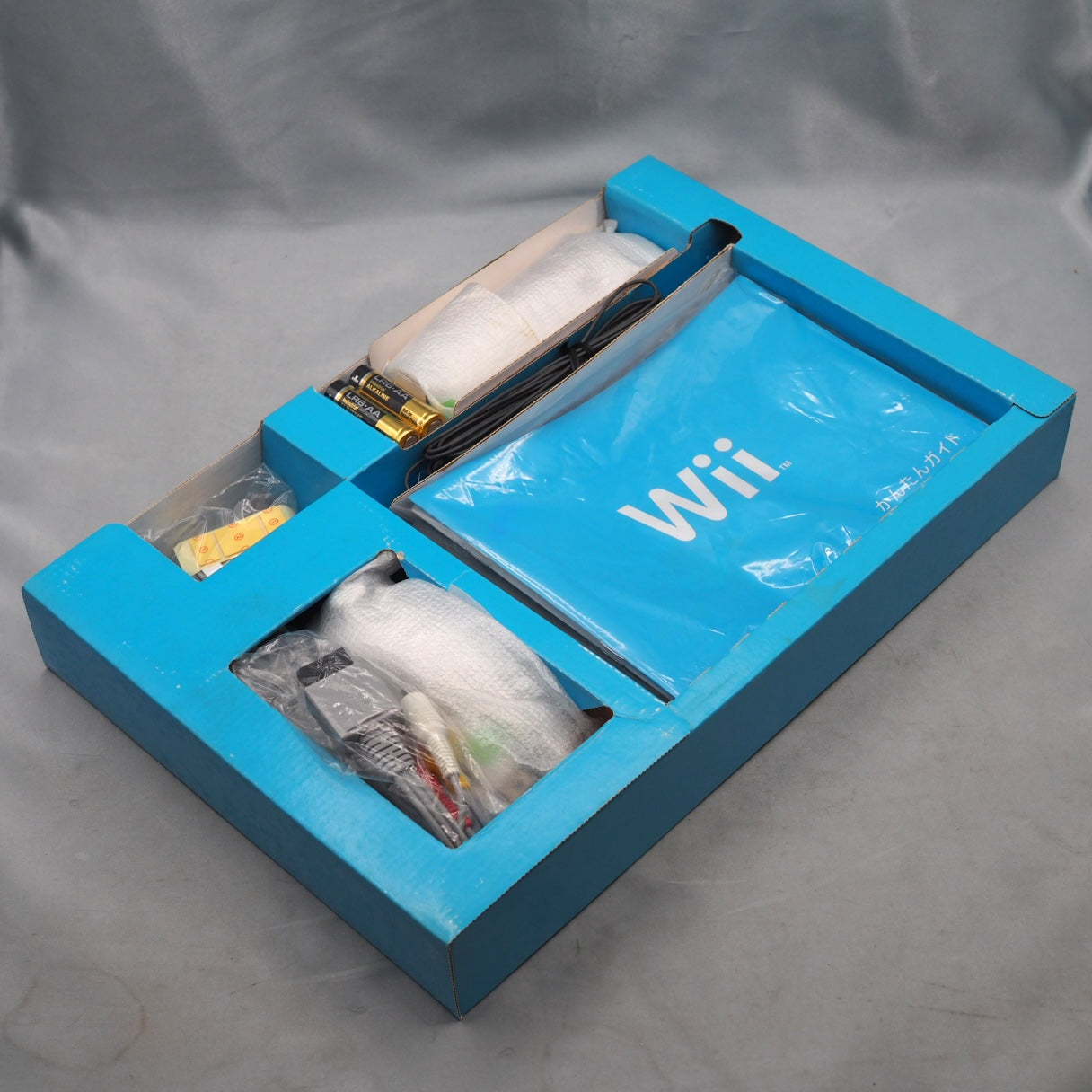 This item rank: A- (Used and tested. Console, remotes, and nunchuk in very good condition. Includes all original accessories and paperwork. Inner carton shows print wear. Outer box shows scuffs, corner wear, creases, and light yellowing. Requires AA batteries for remotes (not included).)