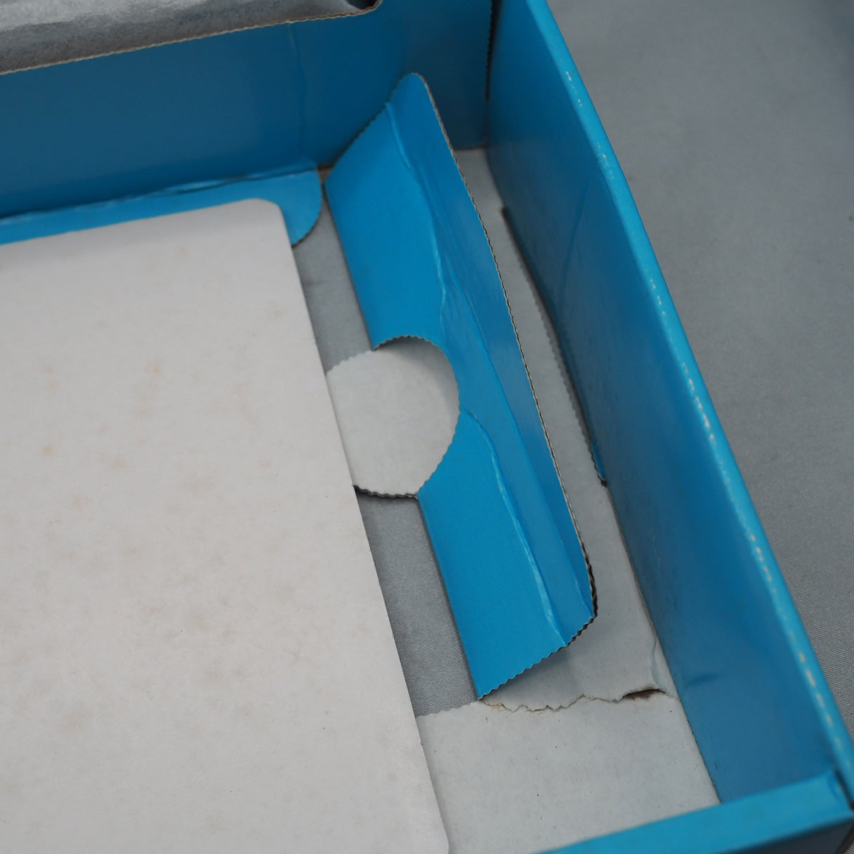 The inner carton shows partial paint and print wear. The outer box has scuffs, scratches, corner wear, creases, and slight localized yellowing.